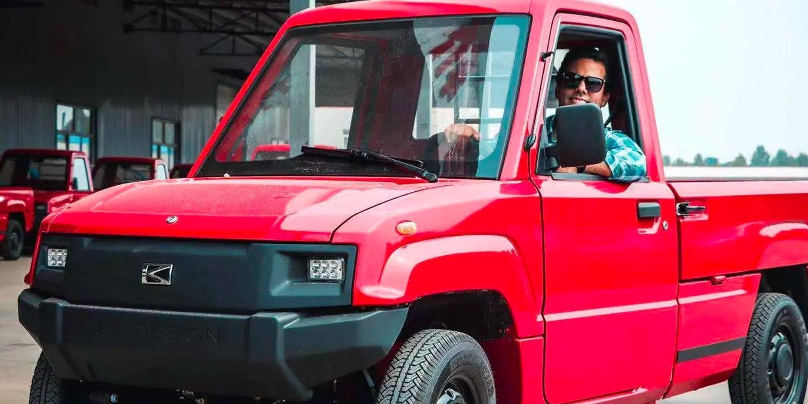En realidad, lo que vemos está más cerca de una mini camioneta para uso utilitario debido a su tamaño: ruedas de 30 centímetros, una cabina estrecha para dos personas y una capacidad de carga útil de 500 kg con una caja o cama para la carga de 1,6 metros de largo.