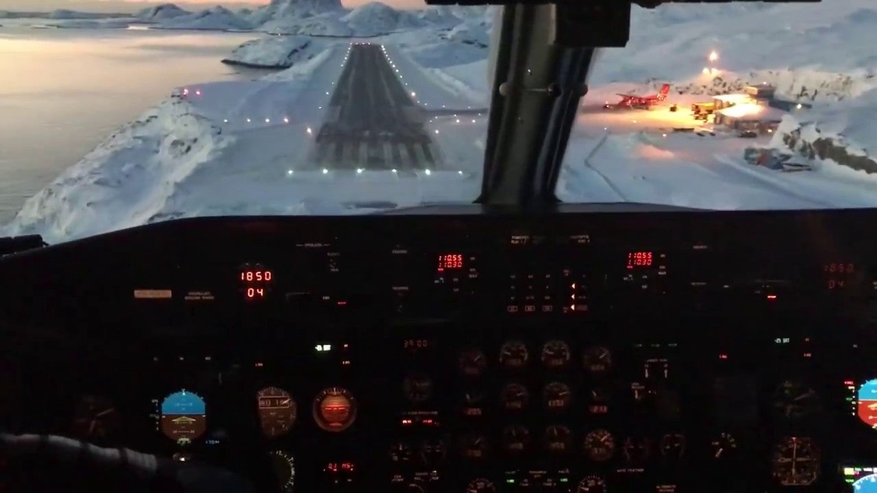 Lo que vemos: el impresionante descenso desde la cabina de un avión para aterrizar en el aeropuerto de la isla Maniitsoq. El enclave, en la costa occidental de Groenlandia, es tan espectacular, hermoso y único que parece una escena sacada de Star Wars.