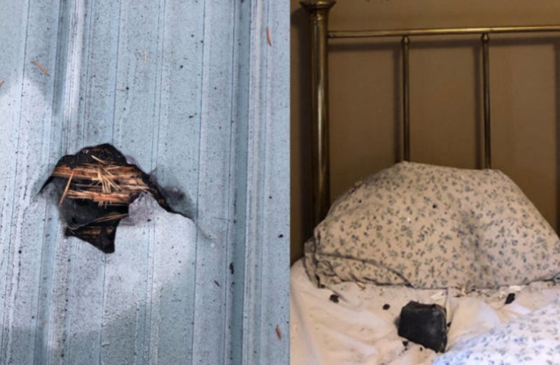 La roca atravesó el techo y acabo incrustada en la cama a pocos centímetros de donde dormía