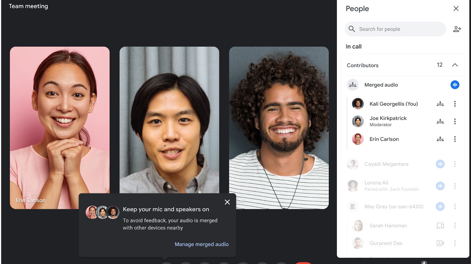 Su nueva característica de audio adaptativo sincronizará los micrófonos y los parlantes de todas las computadoras portátiles en una sala de reuniones.