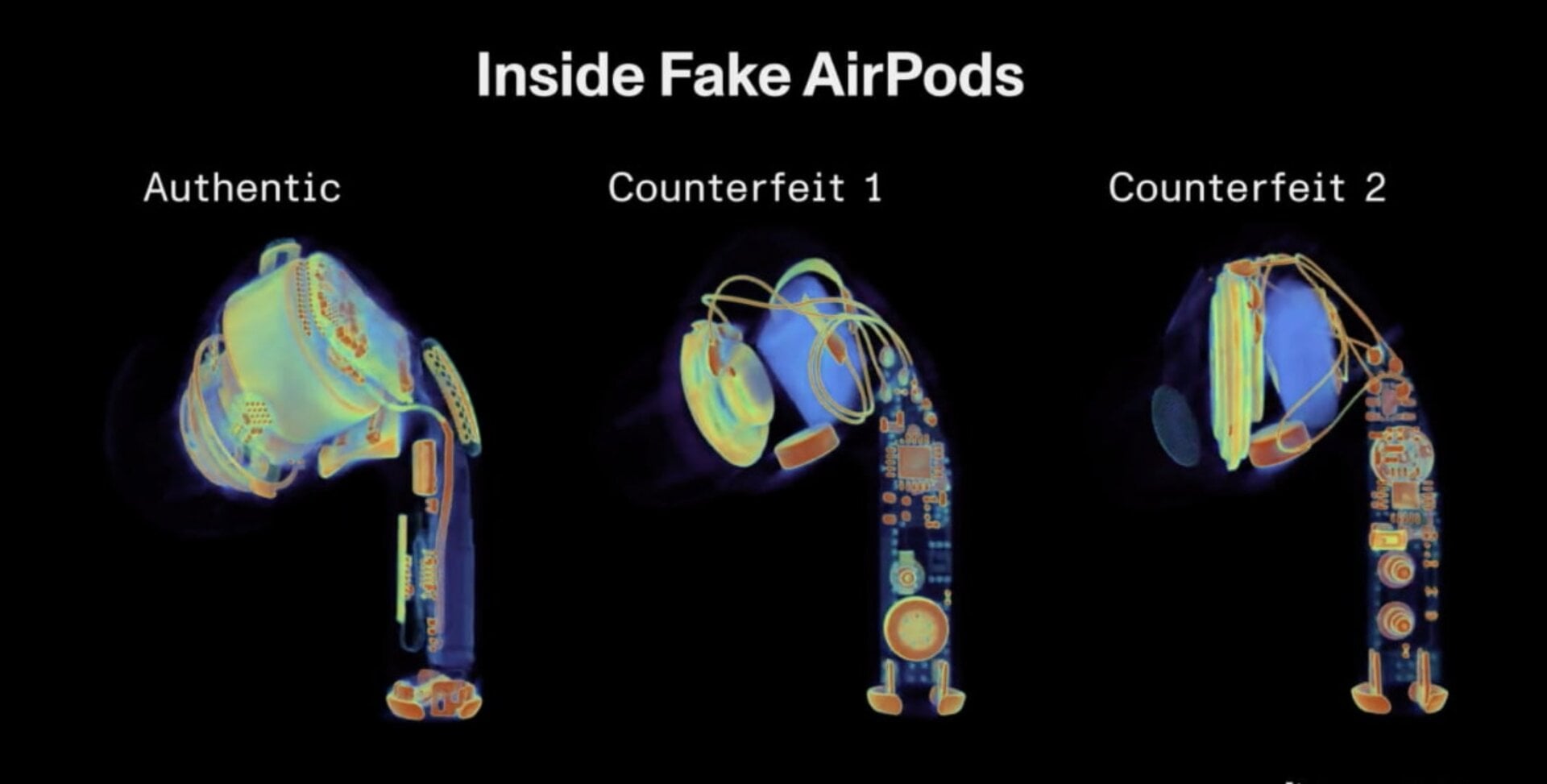 Las tomografías computarizadas revelan que las falsificaciones no se parecen en nada a las reales en todos los departamentos.