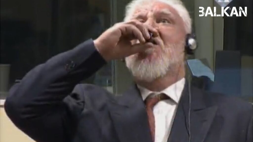 Lo que se aprecia en el vídeo es el suicidio de Slobodan Praljak, ex comandante en la guerra de Bosnia, mientras se celebraba el juicio que lo acusaba a él y otros cinco cargos bosnios de crímenes de guerra. La sesión ha quedado suspendida. Como se puede ver en el vídeo, el ex militar se…
