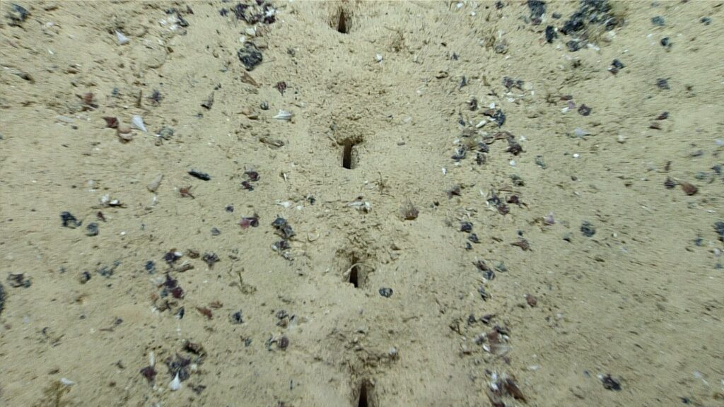 El pasado sábado el barco Okeanos Explorer encontró una línea de agujeros en la arena "casi hechos por humanos"