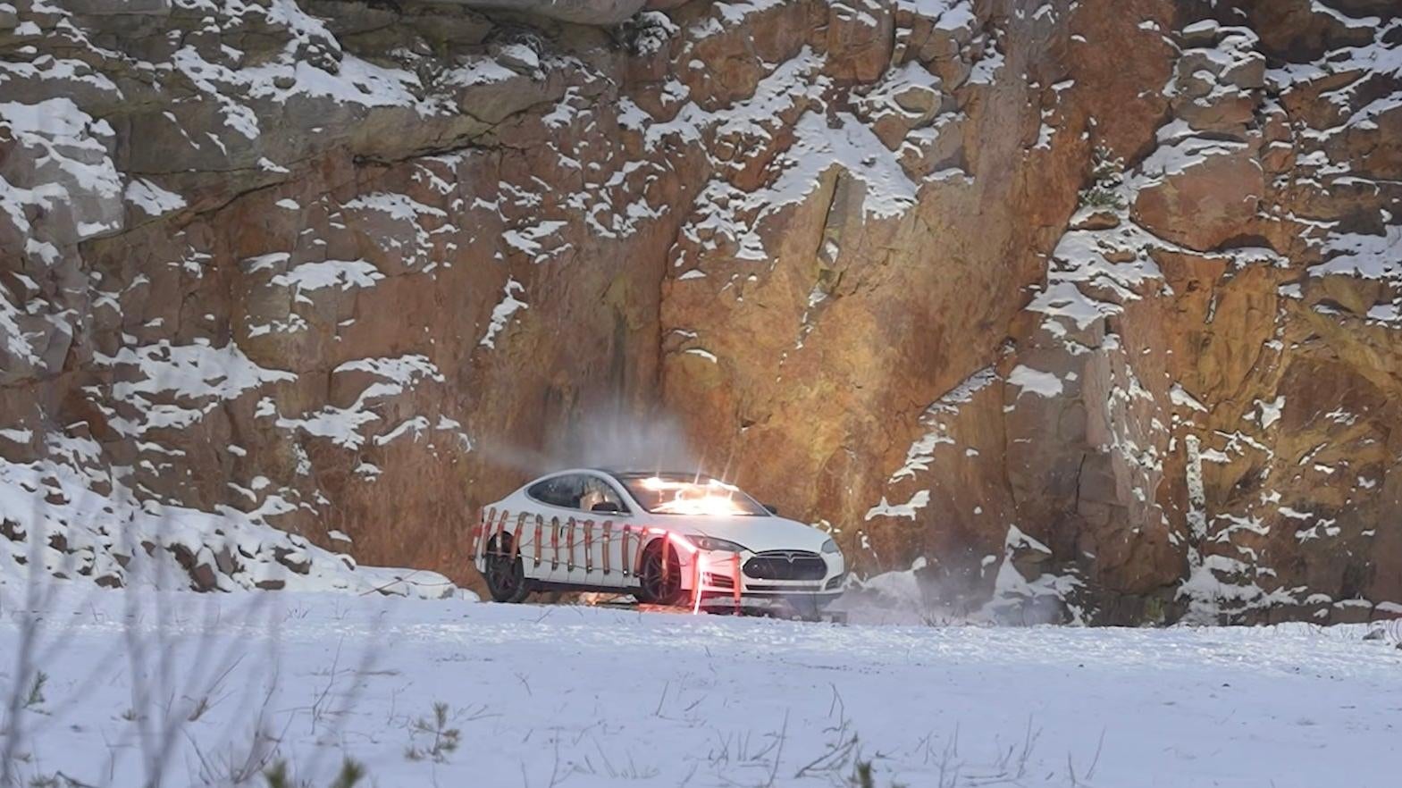 30 kilogramos de dinamita vs. un Tesla Model S de 2013