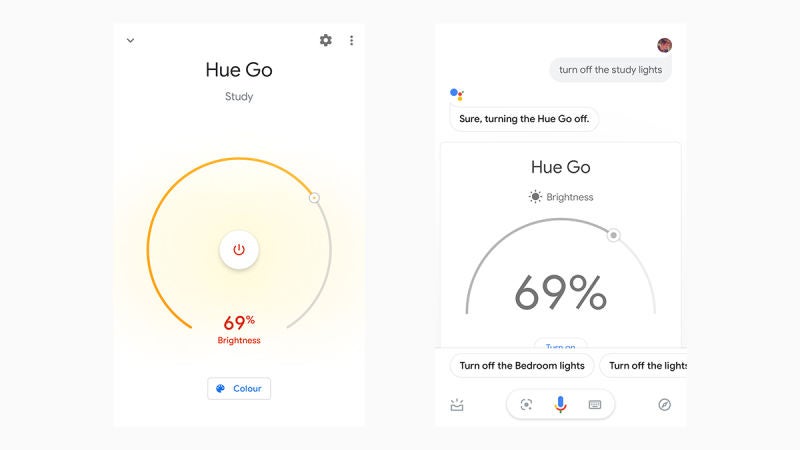 De nuevo, al igual que con Alexa, puedes usar comandos de voz (a través de Google Assistant) en lugar de la aplicación, pero Google tiene una ligera ventaja aquí: puedes decir estos comandos a Google Assistant desde tu teléfono (o incluso con un Chromebook) en lugar de hacerlo a través de un altavoz inteligente, algo que todavía no puedes hacer con la aplicación de Alexa.