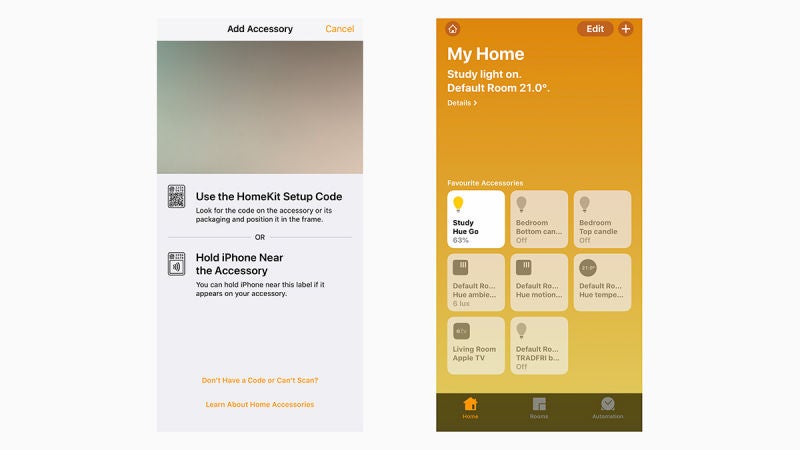Añadir dispositivos a una red de HomeKit es bastante sencillo, pero no tan sencillo como lo es con Alexa y con Google Assistant. Necesitarás escanear un código o colocar tu iPhone cerca de un dispositivo, en lugar de simplemente añadirlo a través del wifi como ocurre con el Asistente de Google o Amazon Alexa. La interfaz también es peor y menos intuitiva que la de sus rivales.