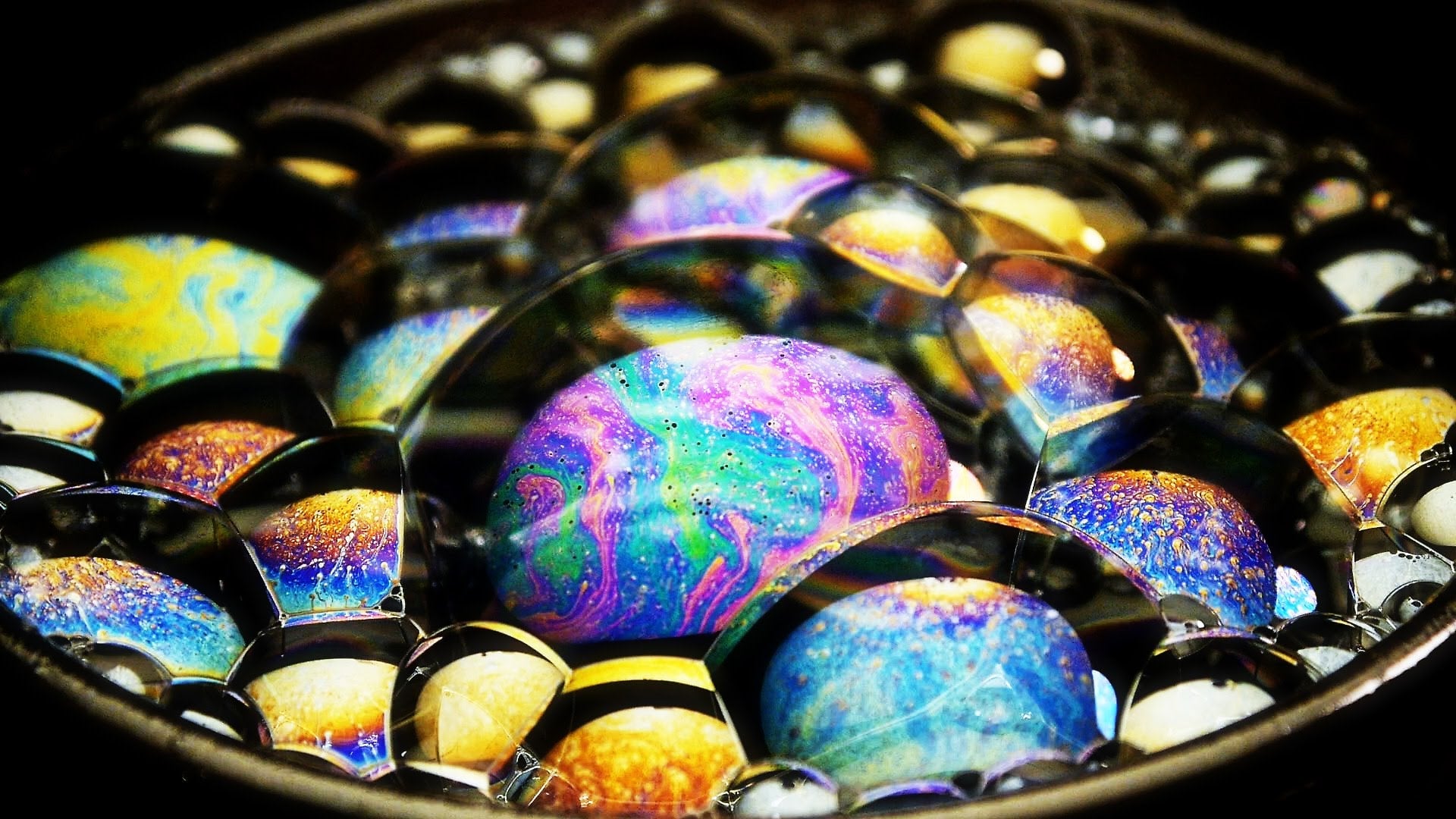 A simple vista, las burbujas que forma el jabón son solo esferas transparentes con un reflejo multicolor en el que se pueden ver el baile del detergente en el agua. Sin embargo, si nos acercamos lo suficiente, la superficie de cada burbuja es un espectáculo sencillamente psicodélico y toda una lección de química.