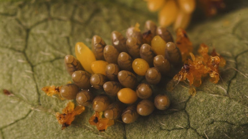 Heidler también explica que tuvo que tener cuidado de pegar firmemente la hoja en la que estaban los huevos de mariquita. De lo contrario, a medida que la hoja comenzara a secarse y curvarse, “se mueve y puede causar problemas de enfoque”.