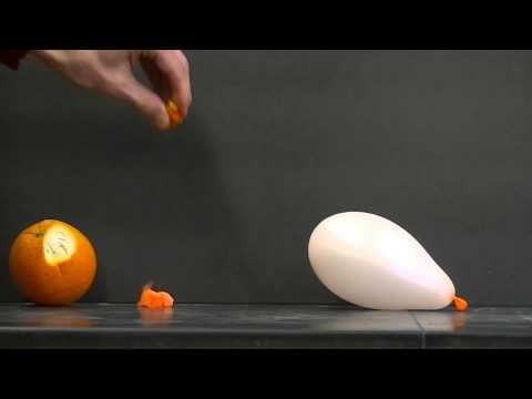 Aparte de explotar globos sin tocarlos, el limoneno también es inflamable a más de 48 grados. Basta romper las ampollas de la piel de la naranja cerca de una llama para crear unas notables llamaradas cortas.