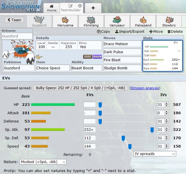 “Yo uso Showdown para prepararme para los torneos”, le dijo a Kotaku. “Por lo general, escalo un poco y luego lo uso para probar contra otros jugadores en los que confío”. Esta prueba implica usar el generador de equipos de Showdown para probar diferentes conjuntos de movimientos y distribuciones de estadísticas.