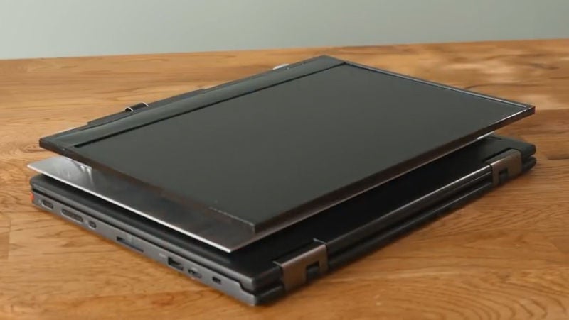 Las empresas ya llevan unos cuántos años probando los portátiles de doble pantalla. En 2008, Lenovo mostró su ThinkPad W700ds que traía una segunda pantalla más pequeña que salía desde un lateral del ordenador. Más recientemente, dispositivos como el HP Omen X 2S o el Asus ZenBook Pro Duo han integrado una pequeña pantalla secundaria en la zona del teclado del portátil, o en el caso del futuro Microsoft Neo, han reemplazado por completo el teclado por una pantalla extra, pero eso es no es lo que estoy buscando.