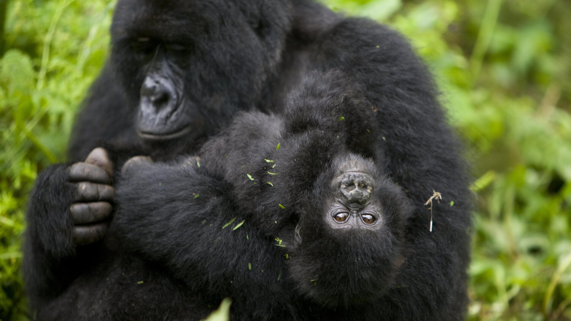 Mucho más frecuentes son las flatulencias. Teniendo en cuenta que comen 20 kilos de follaje al día, los gorilas de montaña se tiran pedos constantemente.