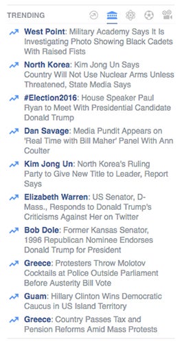 Estas nuevas acusaciones salieron a la luz después de Gizmodo revelara detalles sobre el funcionamiento interno del equipo de Tendencias, un pequeño grupo de periodistas jóvenes, educados en el Ivy League o en las principales universidades de la costa este de los Estados Unidos. Eran los encargados de filtrar las noticias del módulo en la parte superior derecha de Facebook. Los curadores tienen acceso a un ránking de temas de moda que brotan del algoritmo de Facebook, el que da prioridad a las historias que deben mostrarse a los usuarios en la sección de tendencias. Los curadores escriben los titulares y resúmenes de cada tema, e incluyen enlaces a los sitios de noticias. La sección, que se lanzó en 2014, es uno de los lugares con más visibilidad de Internet que ayuda a determinar las noticias que los usuarios —167 millones en los EE.UU.— leerán en cada momento dado.