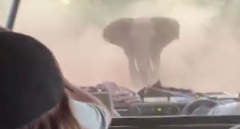 En el clip, de algo menos de un minuto, vemos cómo el jeep da marcha atrás a gran velocidad tratando de escapar de las embestidas del elefante. Algunos de los pasajeros que se encuentran dentro del vehículo usan sus teléfonos para filmar la terrible experiencia, con una visión que muestra al conductor tratando desesperadamente de perder al animal mientras les dice a los que están en el auto que resistan.