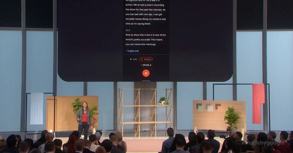 Google también mostró una nueva función de transcripción de audio en tiempo real durante el evento de lanzamiento, que incluso añade la capacidad de buscar palabras clave en clips de audio directamente en el teléfono, sin necesidad de una conexión a Internet.