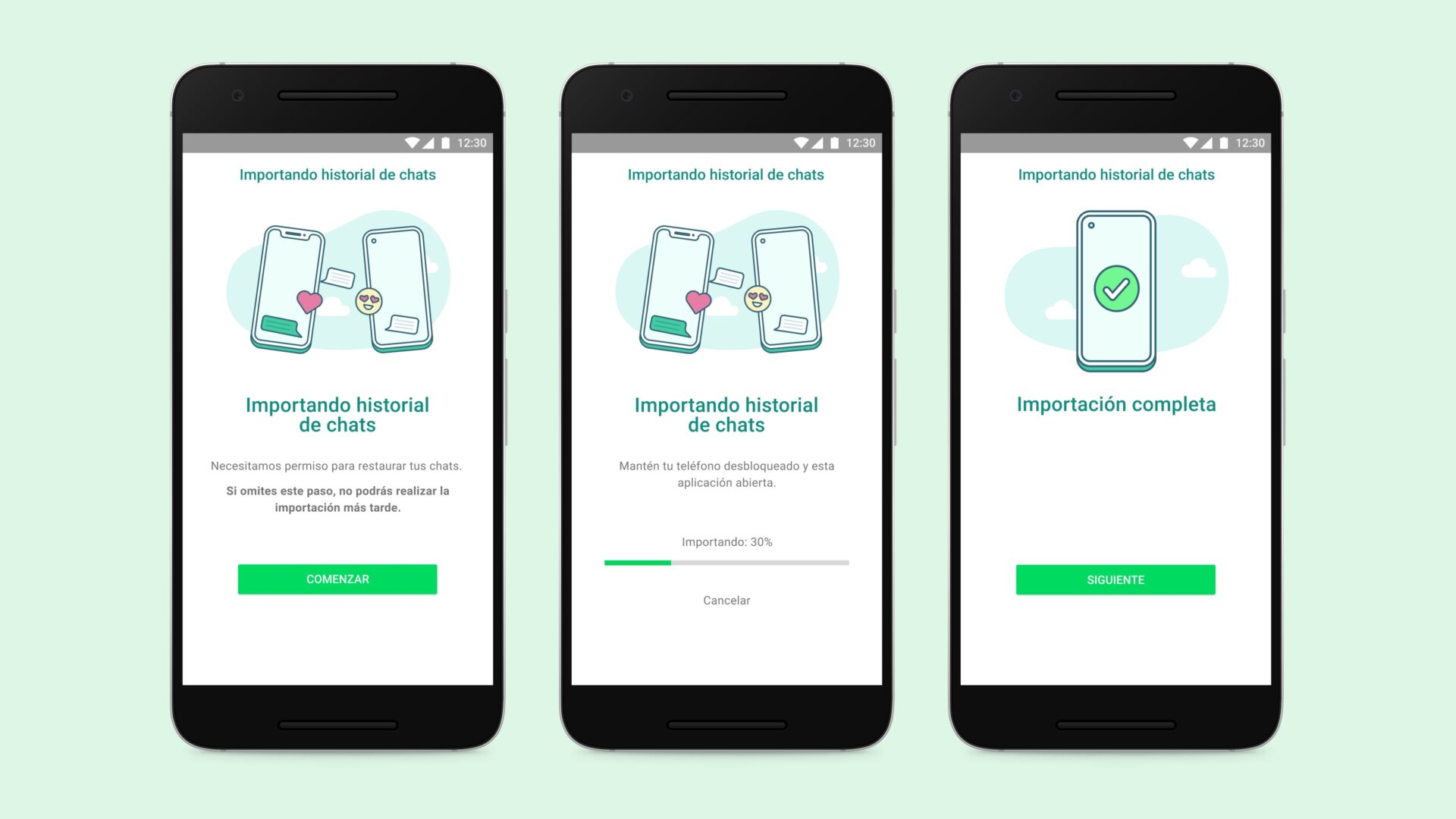 Se acabó la espera. Después de un año de pruebas, y una larga fase inicial que solo incluía teléfonos de Samsung, la opción de transferir el historial de WhatsApp entre sistemas operativos distintos ya está disponible para todos los usuarios, según ha anunciado la compañía hoy en una publicación de Twitter.