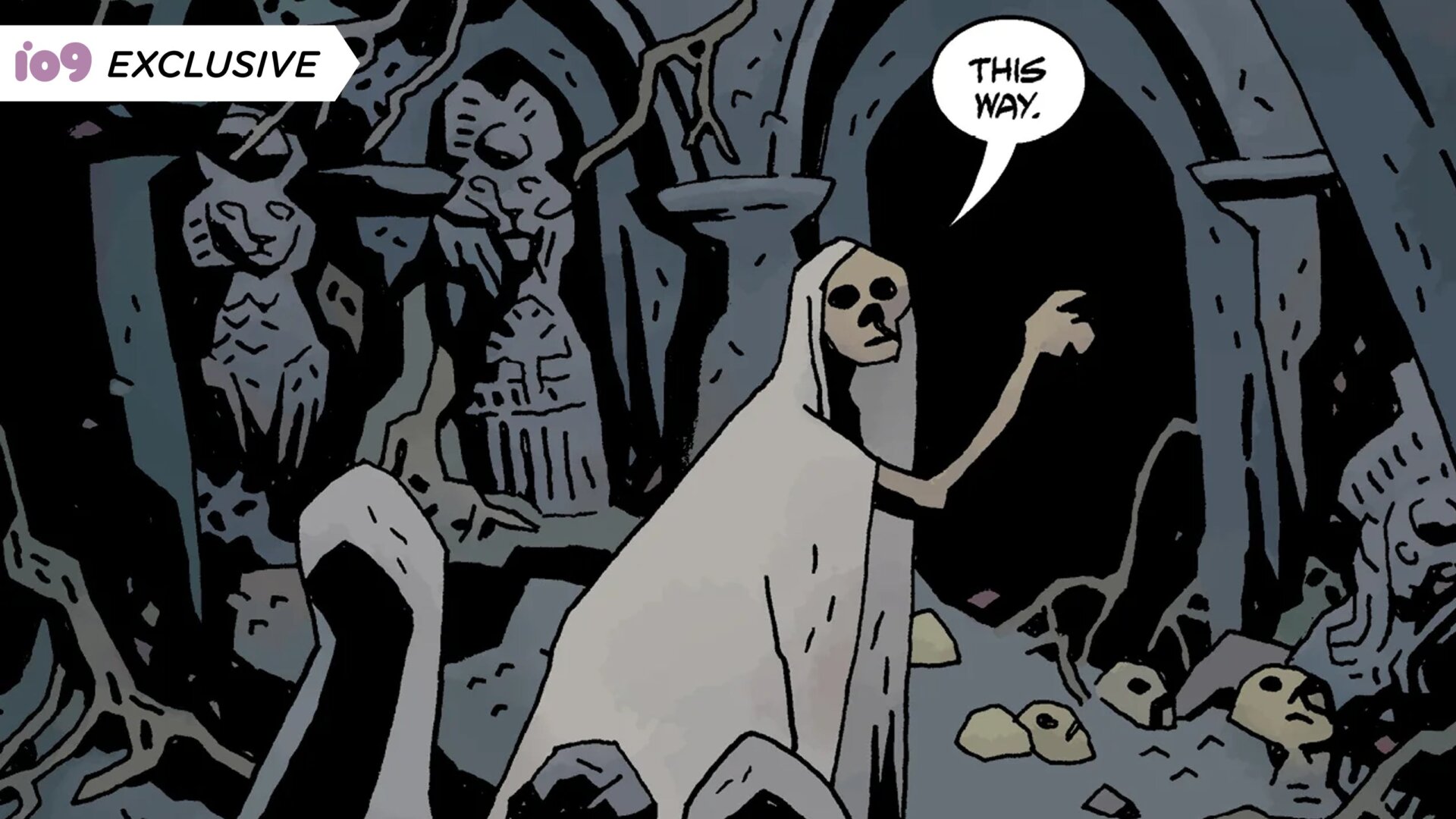 “Durante años quise adaptar este viejo cuento popular italiano sobre un niño que juega a los bolos con un grupo de muertos, pero quería sería una adaptación muy libre y no quería ser específica para Italia, así que terminé creando un mundo completo hacer solo esta historia”, dijo Mignola en una declaración proporcionada a io9. “El mundo que se estaba creando prácticamente se hizo cargo y fue el Lo más divertido que he tenido en mucho tiempo: un mito de la creación, historia, mapas, etc. Muy pronto quedó claro que había mucho de espacio para otras historias, tanto que invité a un viejo colaborador (y genio artístico) Ben Stenbeck para ayudarme a desarrollar el mundo e inventa sus propias historias ambientadas en el mundo. No tengo idea cuán grande será esta cosa en realidad. ”