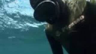 La imagen que vemos muestra a un hombre bajo el mar con las piernas separadas y los brazos extendidos hacia delante. El buzo parece sostener su recompensa en alto, como si fuera un trofeo. Excepto porque no se trata de una captura ordinaria, se trata de un enorme tiburón blanco muy vivo. En realidad, detrás…