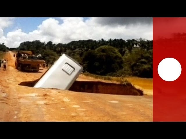 NoticiasUn enorme socavón causado por las lluvias se traga un autobús en Brasil