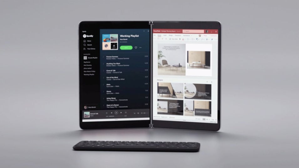 Bueno, esto podría poner nervioso a Samsung. El Surface Duo es como una versión más pequeña del Neo, excepto que también es un teléfono. Microsoft dice que puede enviar mensajes de texto, escribir y todo lo que esperas que hagan los teléfonos inteligentes. Tiene dos pantallas de 5,6 pulgadas y una bisagra de 360 grados. Además, Microsoft se ha asociado con Google para llevar Android a su nuevo teléfono. Es decir, obtienes todas las aplicaciones de Android… en un teléfono Surface.