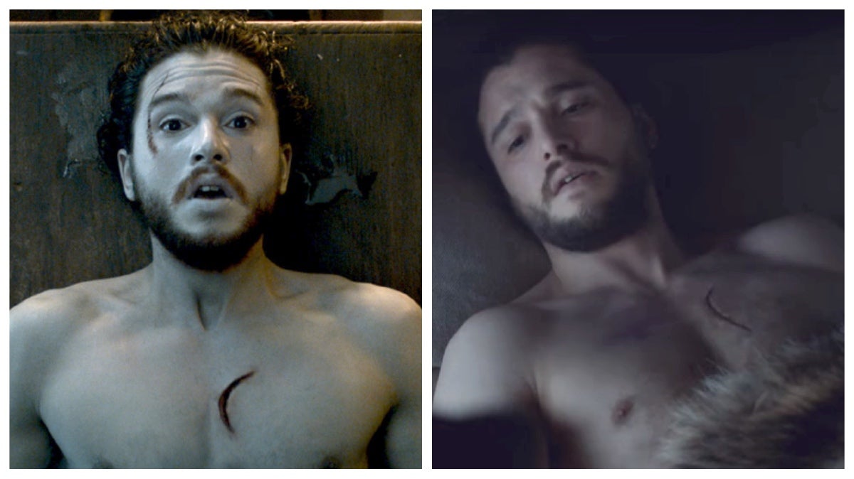 Jon resucitó milagrosamente después de ser apuñalado varias veces por sus hermanos de la Guardia de la Noche al final de la temporada 5, pero le ocurrió otra cosa milagrosa cuando juró lealtad a Daenerys en el episodio de la temporada 7 Más allá del Muro. Su cicatriz en forma de medialuna, la más notable de sus lesiones, aparentemente se desplazó unos centímetros en su pecho y ahora está más lejos del esternón que al principio. Un pequeño error que muestra que la resurrección de Jon hizo más que sacarlo de entre los muertos.