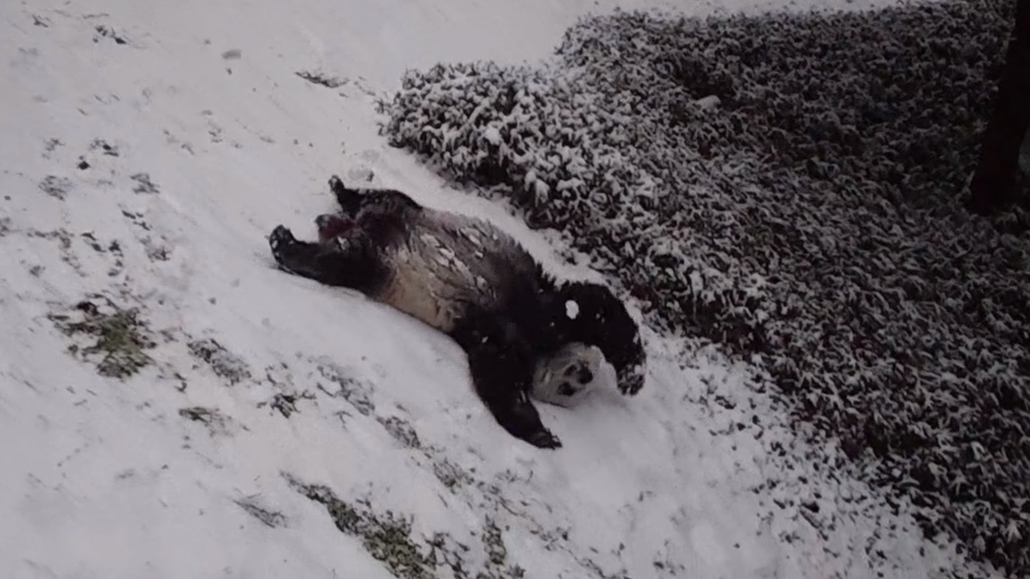 ¿Y qué hizo esta pareja de pandas gigantes? Pues lo que hubiésemos hecho cualquiera de nosotros: rebozarnos por la nieve.
