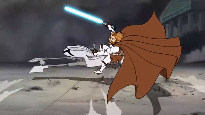 Esa estética exagerada no sólo se aplicaba visualmente, sino también cinematográficamente. Guerras Clon Nos dio proezas de acción que las películas nunca pudieron, Jedi en la cúspide de su poder desmantelando franjas de enemigos en ataques simples o simples gestos de sus manos: ampliaron los límites de lo que podríamos considerar aceptablemente guerra de las galaxias-ian a una especie de mito folclórico. Trajo historias exageradas de cómo Mace Windu por sí solo pudo detener el asedio de Dantooine, cómo Diez soldados clon podrían cambiar el rumbo de la batalla de los muunilistas, de cómo un solo general separatista cibernético podría formar un escuadrón Los Jedi tiemblan de miedo. Guerras Clon‘La presentación estilística se presta a una confusión entre lo real y lo surrealista en pocas formas. guerra de las galaxias Historias, tan obsesionadas con la definición rígida de lo que es y lo que no es parte de un canon prescrito como puede serlo la franquicia hoy en día. —he tenido desde entonces, abrazando esa idea de que siempre hay un poco de verdad en las leyendas que llegaría a definir la transición de una era de del Universo Expandido al siguiente.