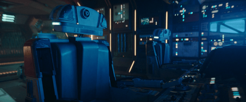 Tenemos a Pip, el compañero de herramientas múltiples de Osha, quien, además de poder soldar, ofrece extinción de incendios y hace muchas cosas. de otras cosas, parece ser un ser tan sensible como cualquier droide de escala humanoide que veamos. En el episodio dos, el Jedi El puesto avanzado en Olega tiene una versión del droide de puerta que vimos en El regreso del Jedi en la puerta de Jabba. Y luego está el transporte público antes mencionado, que no sólo tiene un guardia de seguridad droide como aparentemente el único oficial en tablero, pero luego el pequeño divertido realmente interesante de todo este esfuerzo hasta ahora: los Droides de la silla.