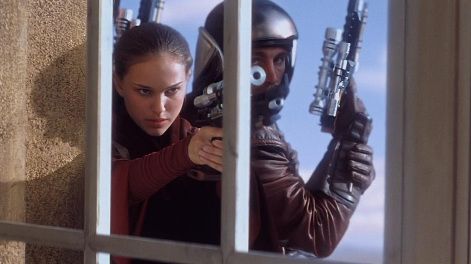 el fondo sónico de guerra de las galaxias es casi inigualable para legendario, inmediatamente reconocible gritos. El silbido de un sable de luz que se enciende. El penetrante lamento de un Caza TIE que chilla a la vista, la cacofonía alienígena de Mos Eisley cantina. Las precuelas agregadas a este catálogo masivamente, desde el bajo tembloroso de los motores de carreras hasta el ruido de los escudos de rayos. Pero nada se compara con el sonido que los desintegradores usan Padmé y la guardia de Naboo Amenaza fantasma a mí.