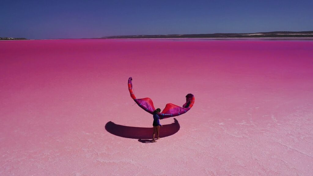 Mientras nosotros sacamos el abrigo y la bufanda del armario, en otras latitudes disfrutan del verano para hacer un poco de kite surf, y qué mejor para ese deporte que una laguna de color rosa. El vídeo, grabado en Australia, no está manipulado de ninguna forma. El agua tiene ese color natural. El lugar es…