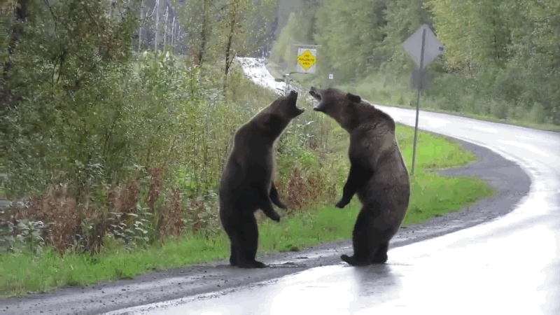 La salvaje escena tuvo lugar en Northern B.C., cerca de la frontera con Alaska, cuando Cari McGillivray conducía por la carretera y se encontró con dos osos que aparentemente se estaban retando. McGillivray se detuvo y comenzó a grabar la batalla que iba a tener lugar. Como se aprecia en las imágenes, los osos se…