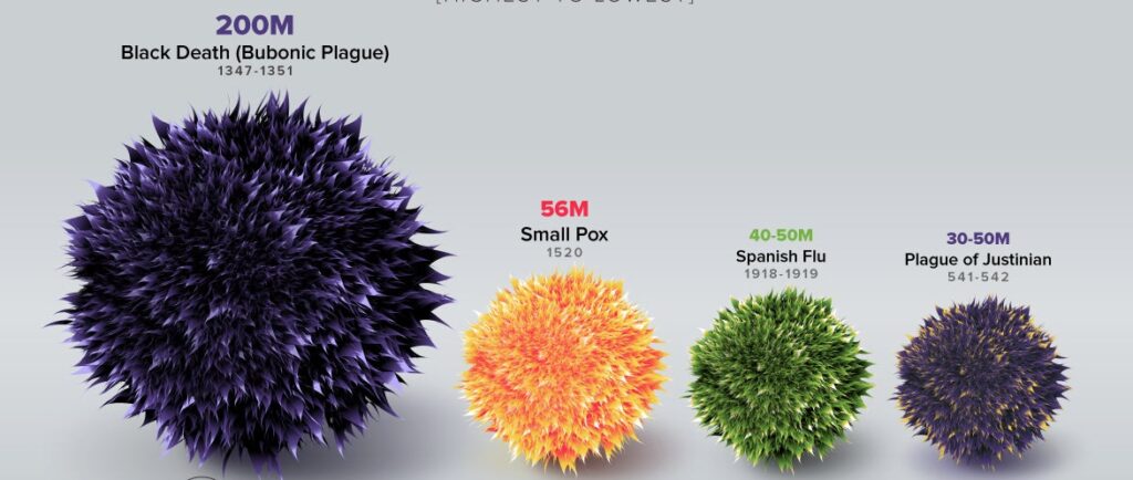 La historia nos dice que a lo largo de los siglos la humanidad se ha enfrentado a todo tipo de pandemias mortales como la viruela y la peste bubónica. ¿En qué lugar quedaría COVID-19 con las pandemias del pasado? La siguiente visualización es una infografía realizada por Visual Capitalist. La misma nos da una idea…