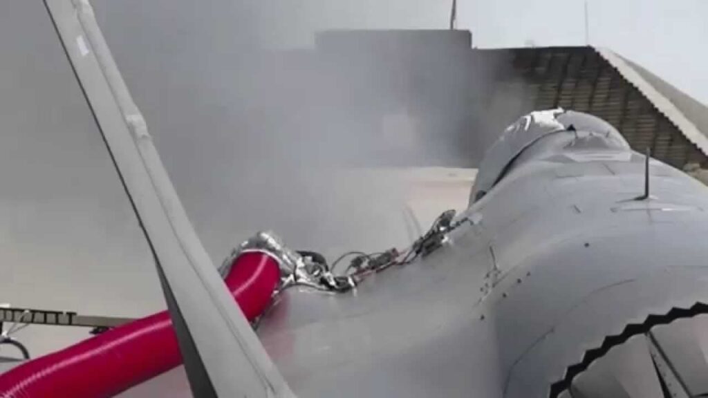 Esta no es una toma que se suela ver con frecuencia. Se trata del cañón internoGAU-22/A de 25mm del caza F-35A, abierto en el fuselaje para demostrar su funcionamiento, incluido los cañones individuales girando hidráulicamente, la pequeña puerta frontal abriéndose y el ventilador del fuselaje también al aire. Y, por supuesto, mucho humo y llamas.…