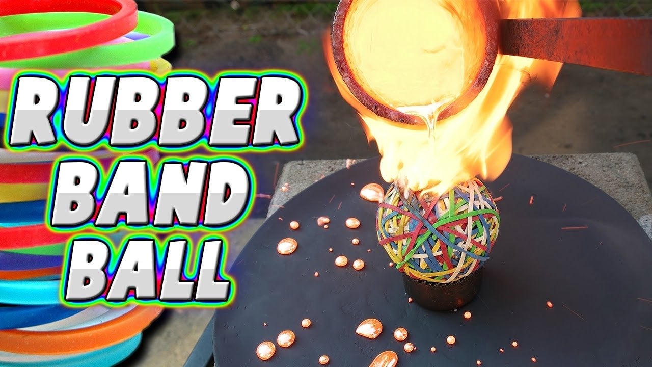 Para crear una pelota de gomillas (también llamadas gomas elásticas o ligas) del tamaño de una de béisbol necesitas cientos de unidades y muchos minutos de tu tiempo. ¿Qué pasa si luego le arrojas cobre fundido a más de 1.000 grados Celsius? Un incendio seguro, pero no todas las gomas serán destruidas. El responsable del…