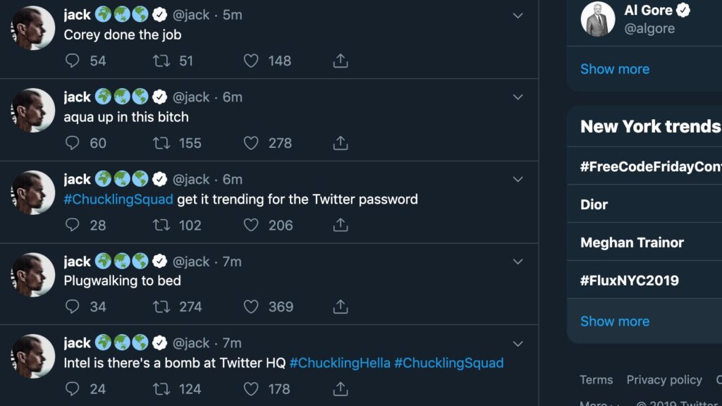 A partir de las 15:45, hora de Nueva York (21:45 en Madrid y 14:45 en Ciudad de México), la cuenta del director ejecutivo (CEO) de Twitter, Jack Dorsey, publicó aproximadamente 20 tweets bastante extraños, que incluían el nombre de un supuesto equipo de hackers, además de insultos raciales. Entre los tweets se encontraban cosas como…