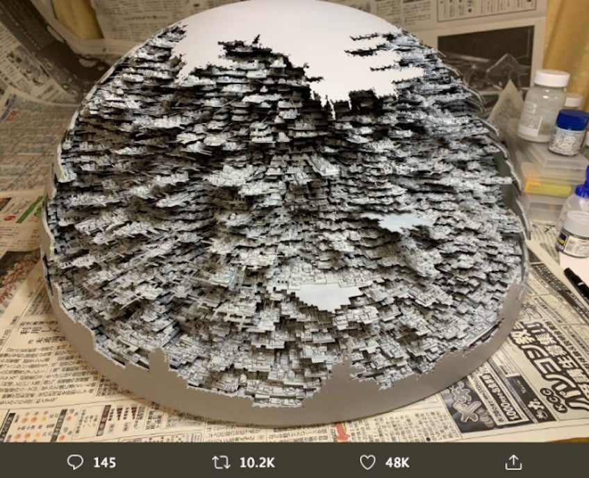 El 5 de julio de 2015, el fan de Star Wars y usuario de Twitter C3poC3 comenzó a trabajar en su maqueta dela Estrella de la Muerte II. Ahora, en 2019, todavía no la ha terminado. Como puedes ver, actualmente está pintando el hemisferio norte de la Estrella de la Muerte II (la segunda estación…