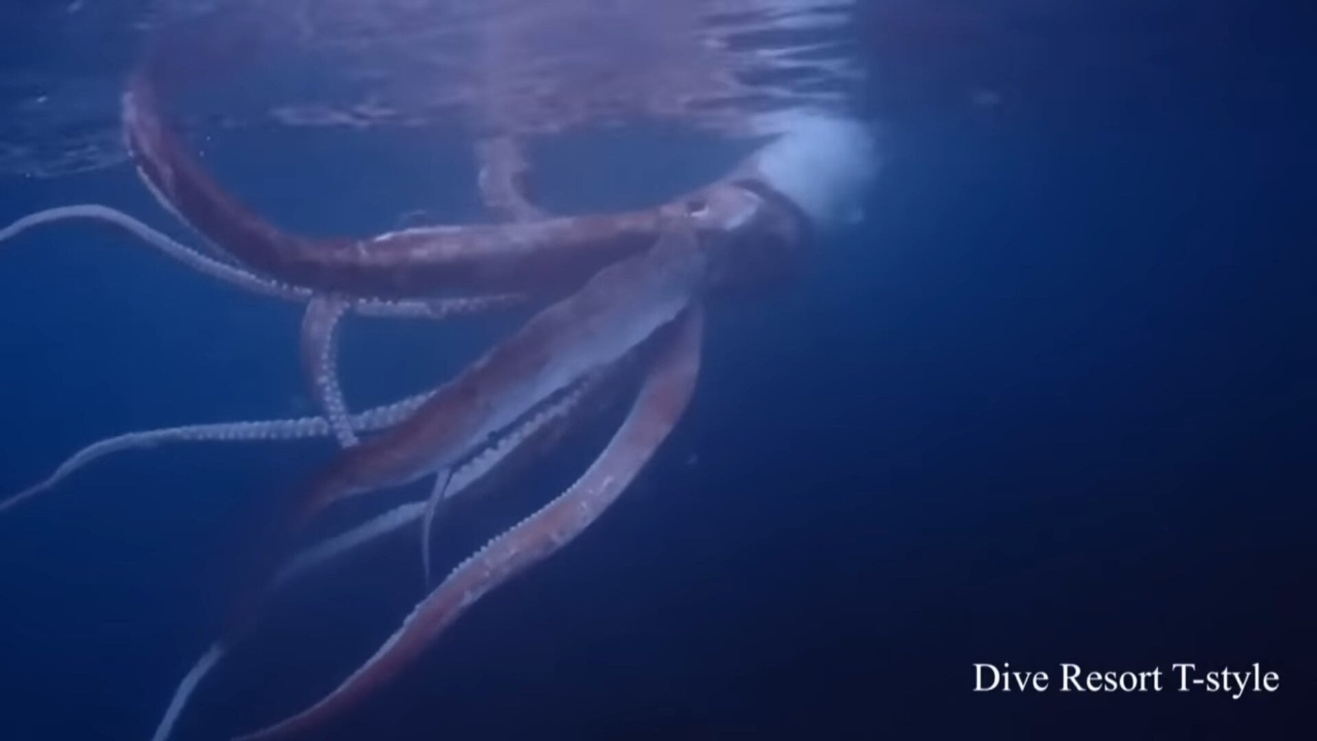 Un par de buzos consiguen grabar a un calamar gigante nadando frente a la costa de Japón