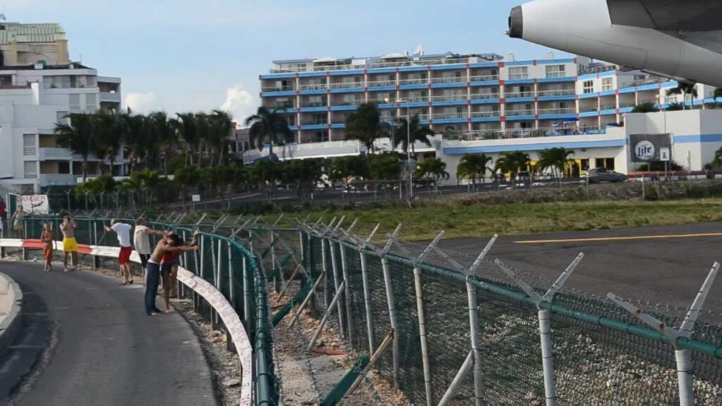 Muchos turistas se aglutinan por el Aeropuerto Internacional Princesa Juliana, ubicado en la isla caribeña de Sint Maarten, para echar un vistazo al despegue y aterrizaje de los aviones, los que están increíblemente cerca de playa. Numerosas señales advierten a los turistas de no acercarse demasiado para no ser lanzados mortalmente por las violentas ráfagas…