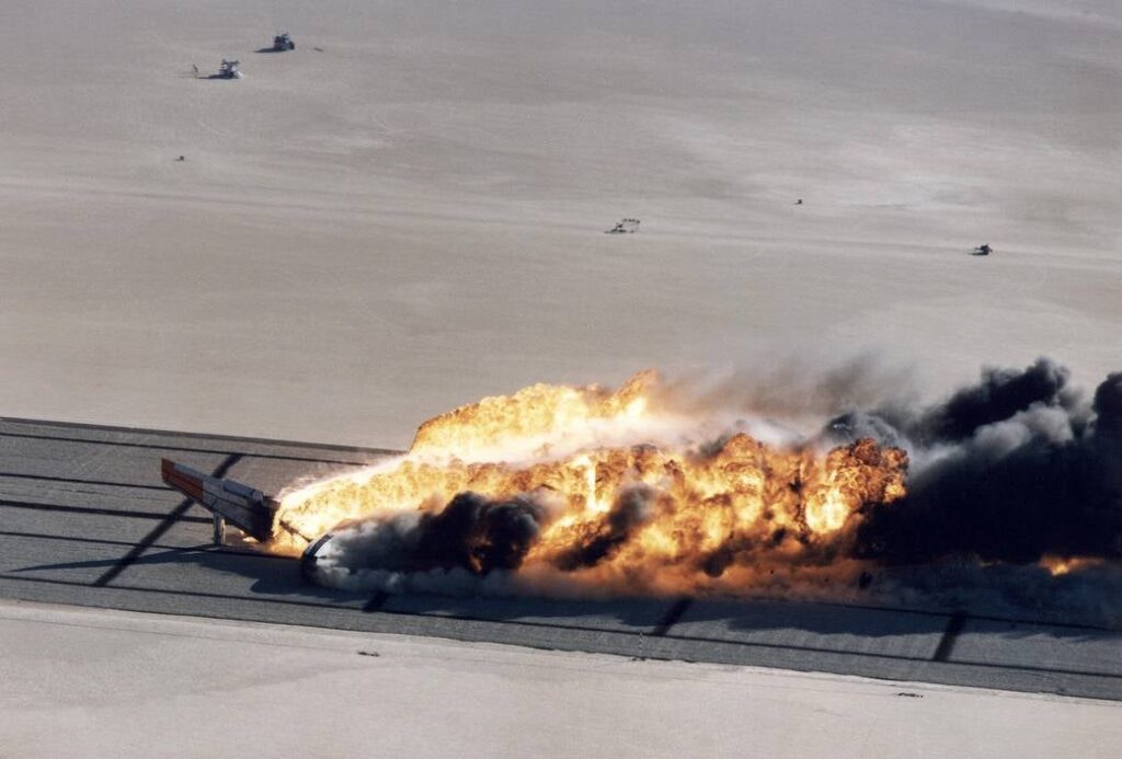 La escena que vemos tuvo lugar en la mañana del 1 de diciembre de 1984 en Rogers Dry Lake, California, un área de tierra árida ubicada en los alrededores del desierto de Mojave. Allí, tras nueve minutos en el aire, un Boeing 720 repleto de combustible iba a estrellarse en el suelo. El impacto fue…