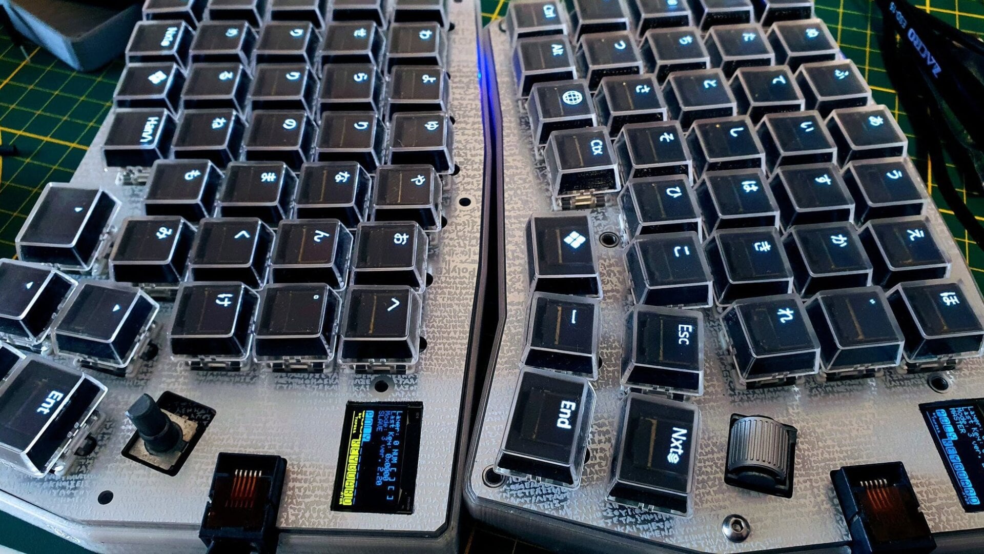 cada mitad del teclado dividido ycontroles Las teclas OLED individuales. Las mini pantallas reales están conectadas mediante cables flexibles. Y puedes usar software popular como QMK para personalizarlo. .