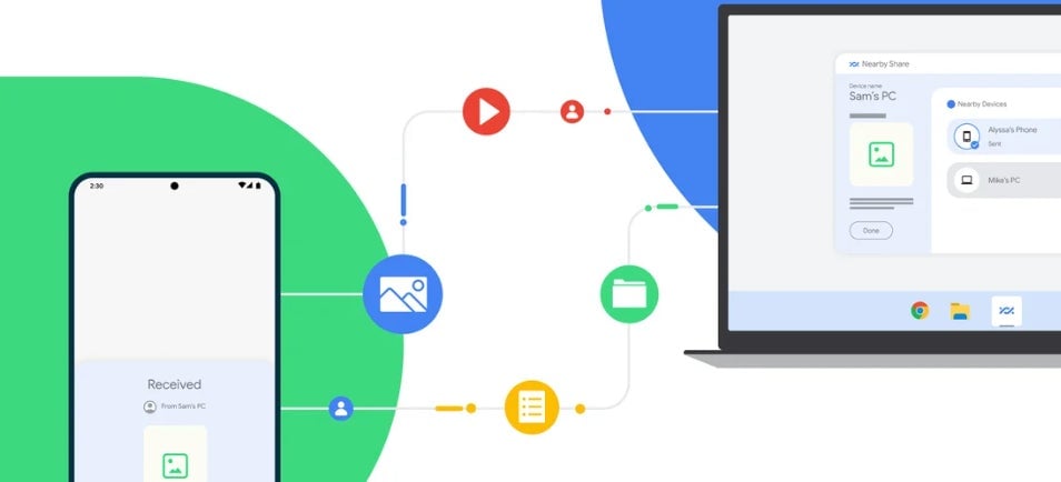 Nearby Share funciona de manera similar al "AirDrop" de Apple, pero entre dispositivos Android y ahora también con computadoras Windows