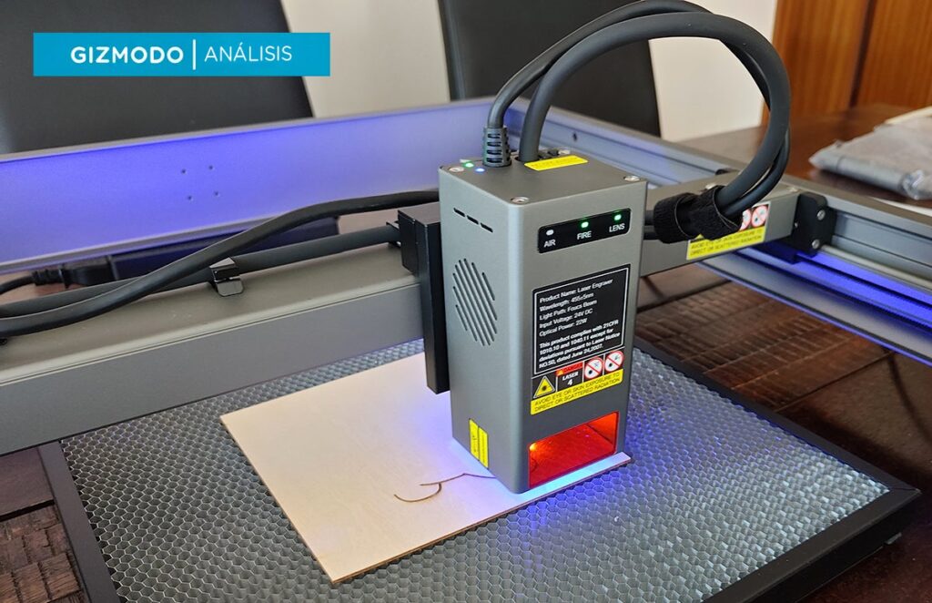 El láser de 22w del Falcon 2 es un monstruo capaz de grabar y cortar madera, cuero o metal con una facilidad impresionante