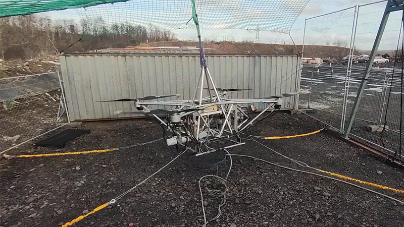 Al impulsar las hélices giratorias con hidráulica en lugar de electricidad, este dron aumenta enormemente su alcance