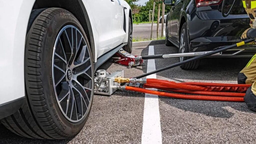 En abril, los bomberos gastaron más de 100.000 litros de agua en apagar un Tesla en llamas; con esta manguera habrían gastado 1000-4000