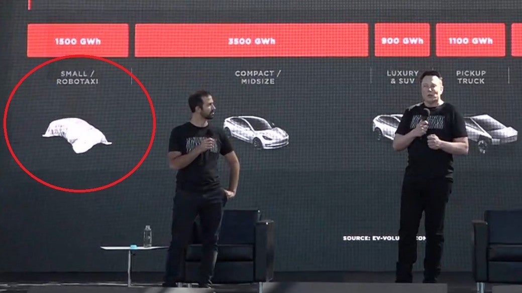 Curiosamente, la diapositiva con la que relevaron estos planes (sin mostrar el diseño del coche) decía “small / robotaxi”, confirmando que será un compacto, y sugiriendo que el sueño de Musk de convertir los Teslas en vehículos autónomos que generan dinero mientras sus dueños no los usan sigue vivo (y tiene algo que ver con ese supuesto Tesla Model C de precio asequible).