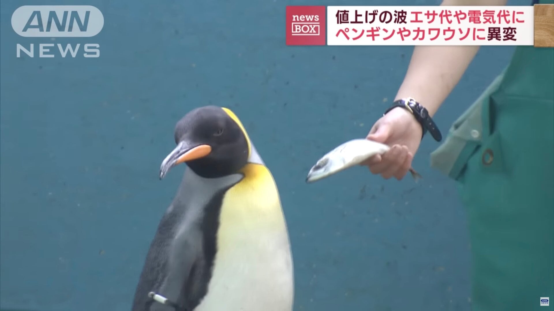 Un dramático pingüino vuelve la cabeza cuando su cuidadora le ofrece una caballa. Otro pingüino coge el pescado con la boca y lo tira al suelo. La caballa no es el pescado favorito de estos animales, pero el acuario de Hakone ha tenido que reducir costes a causa de la inflación, ofendiendo en el proceso a algunas de sus estrellas.