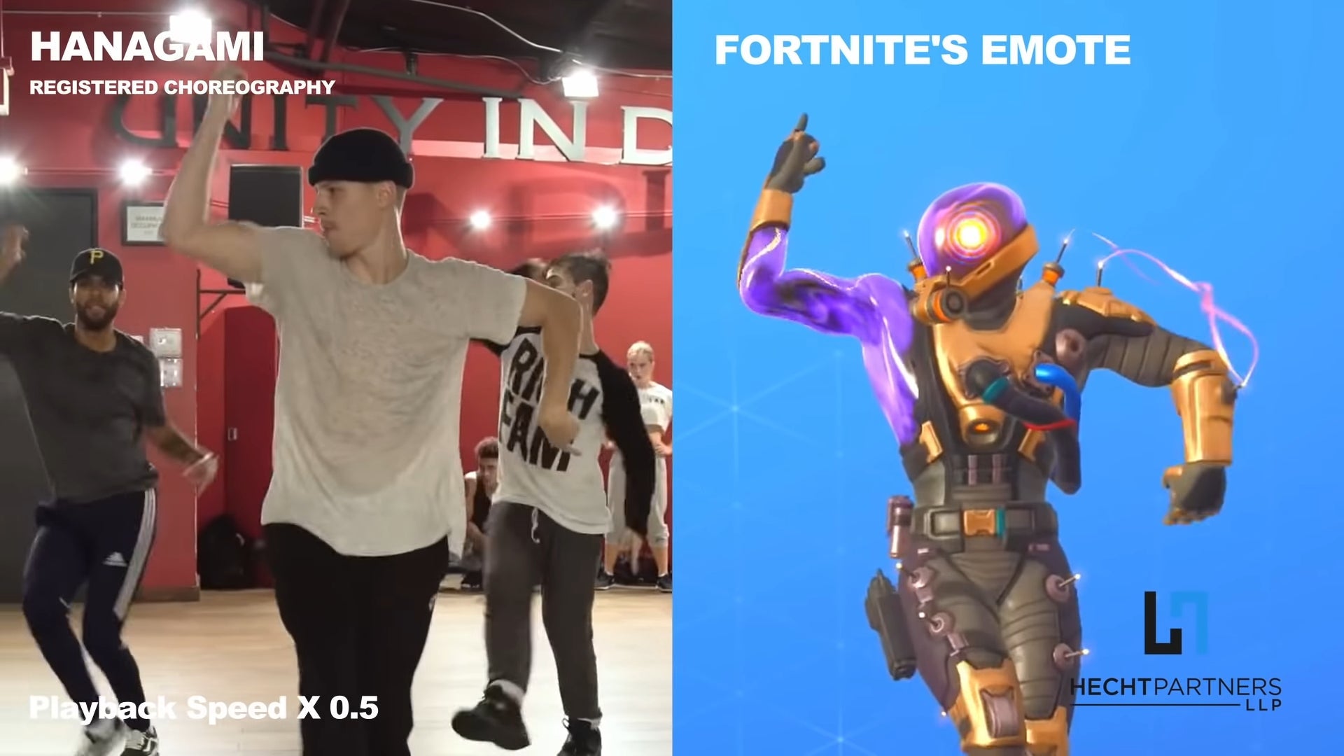 En 2017, Hanagami publicó un video de un baile que había coreografiado al ritmo de la canción “How Long” de Charlie Puth. En agosto de 2020, Fortnite presentó el emote “Es complicado”. Ahora, el abogado de Hanagami, David Hecht, ha subido un vídeo a YouTube comparando los primeros movimientos del baile de Hanagami con los primeros movimientos del emote en el juego. De hecho, los movimientos y el tiempo en el que suceden parecen ser casi idénticos. Sin embargo, según demandas previas presentadas contra Epic, el parecido por sí solo no es suficiente para establecer un reclamo legítimo.