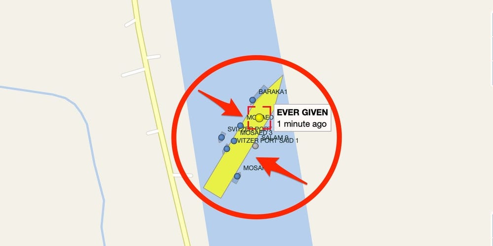 Look at the size of the ship blocking the #SuezCanal if you zoom into the bow of the ship you can see a digger for size reference pic.twitter.com/428ha5ejav