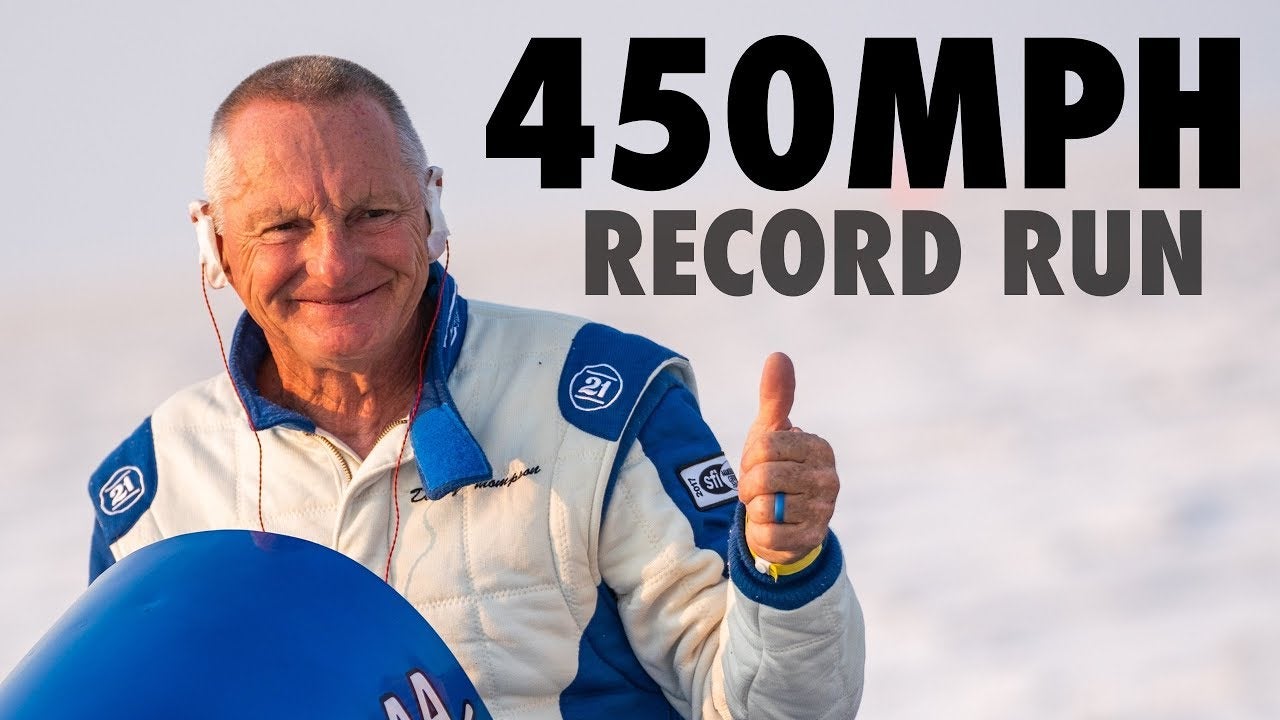 Danny Thompson es un piloto de carreras que, a sus 69 años de edad, acaba de romper el récord mundial del coche más rápido potenciado con pistones en el mundo, superando los 722 Kilómetros por hora en su viejo prototipo de 50 años de antigüedad, llamado Challenger 2.
