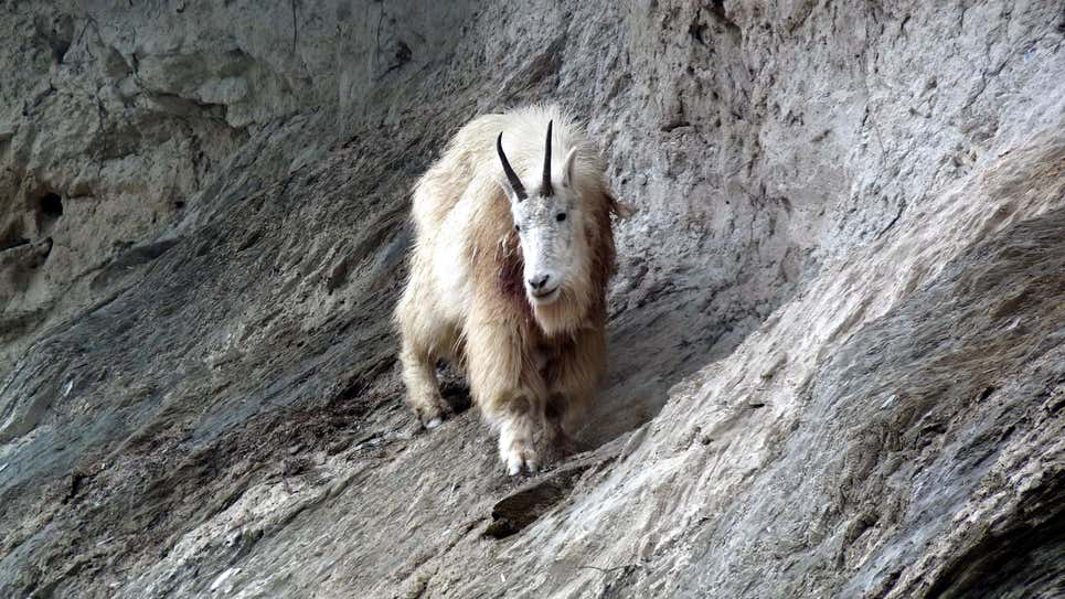 Los ataques del oso grizzly a las cabras montesas son bastante comunes. Un video tomado en 2018 cerca de Mount Bosworth, también en Columbia Británica, muestra a una cabra montesa, junto con su hijo, buscando refugio en un acantilado durante un ataque fallido de un oso. Puedes ver el video de 2018 a continuación: